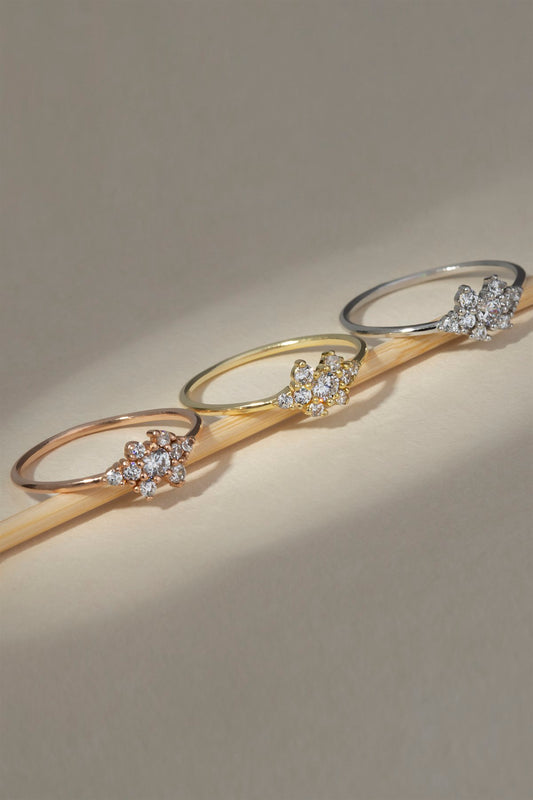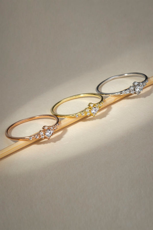 Anillo de oro macizo con diseƱo de piedras preciosas | 14K (585) | 0,94 gramos