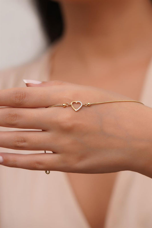 Pulsera de corazón de piedras preciosas de oro macizo | 14K (585) | 2,31 gramos