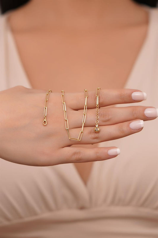 Solid Gold Paperclip Bracelet Bird Cage Chain