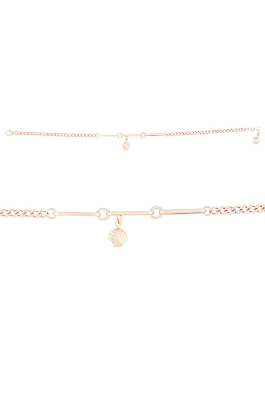 Pulsera de concha de mar con cadena de clip de papel de oro macizo