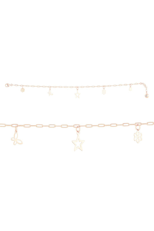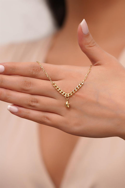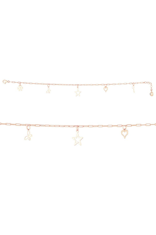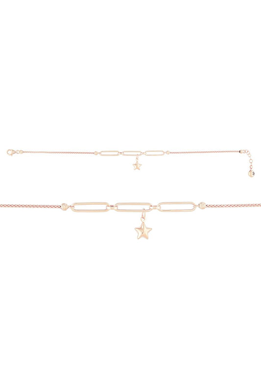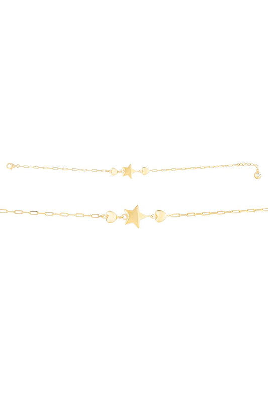 Pulsera de estrella y corazón con cadena de clip de papel de oro macizo