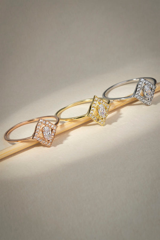 Anillo Baklava con piedras preciosas en hilera de oro macizo