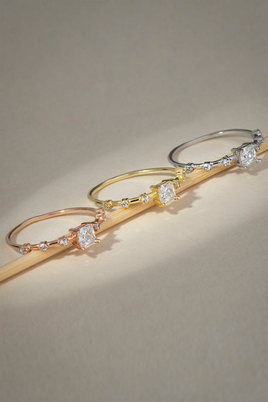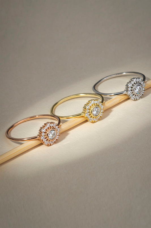 Anillo solitario de piedras preciosas en fila de oro macizo