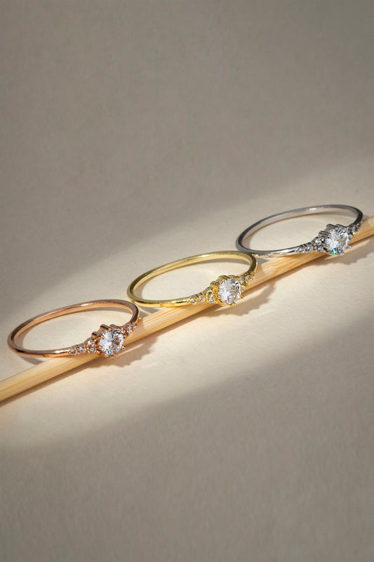 Solid Gold Solitaire Ring 0.85 Carat Zirconia Infinity