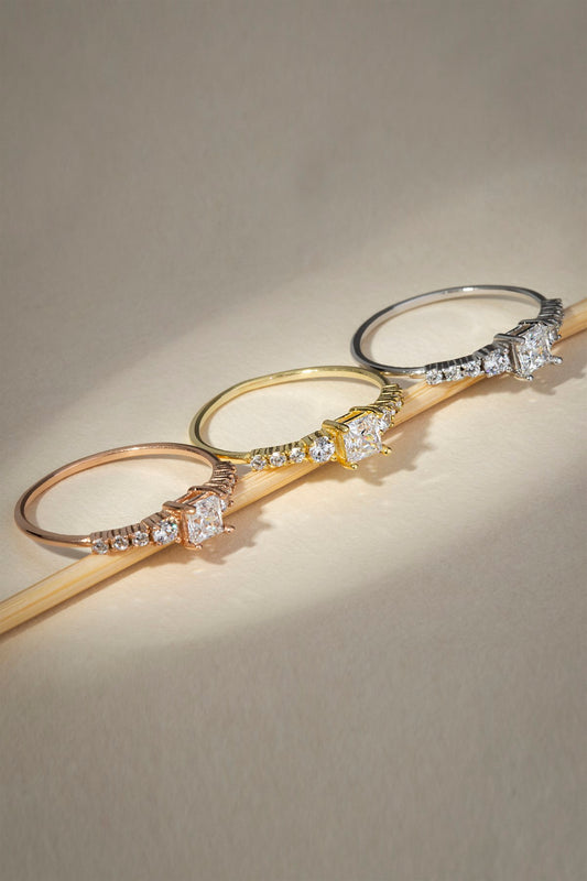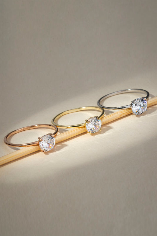 Solid Gold Solitaire Ring 0.85 Carat Zirconia