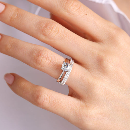 Solitaire & Half Turn White Solid Gold Ring