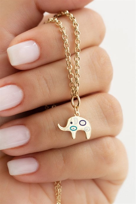 Collar de elefante de esmalte de oro macizo | 14K (585) | 3,36 gramos