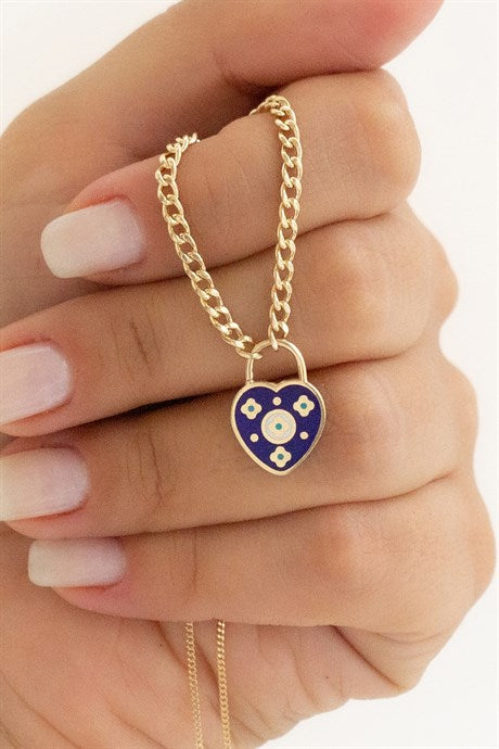 Collar de oro macizo con corazón de mal de ojo | 14K (585) | 1,24 gramos