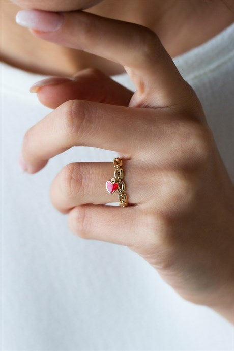 Anillo de cadena de corazón tambaleante de oro macizo | 14K (585) | 1,95 gramos
