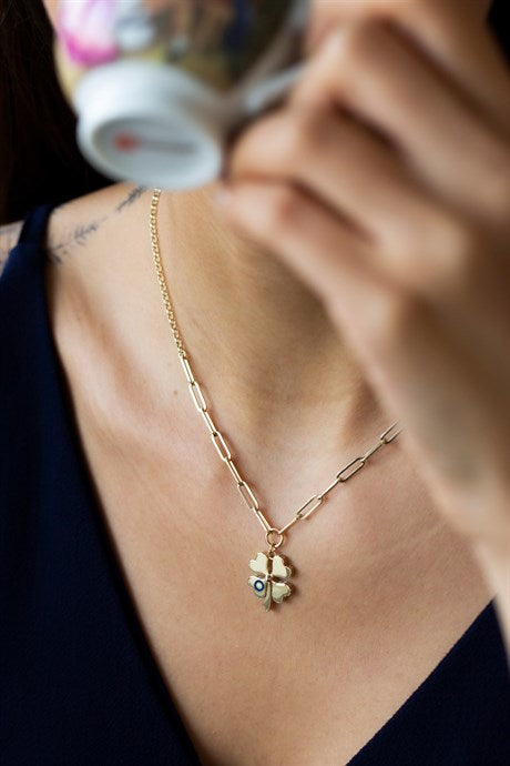 Collar de trébol de corazón de oro macizo | 14K (585) | 3,74 gramos