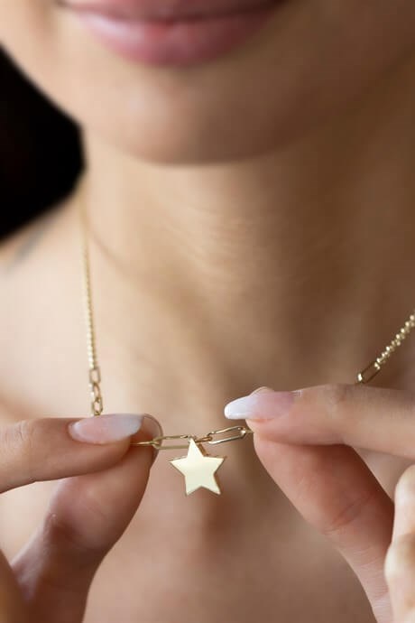 Collar de estrella de cadena de cable plano con sorteo de oro macizo | 14K (585) | 3,17 gramos