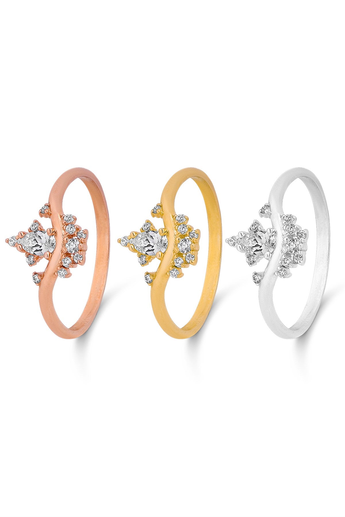 Anillo con diseño de piedras preciosas en forma de gota de oro macizo