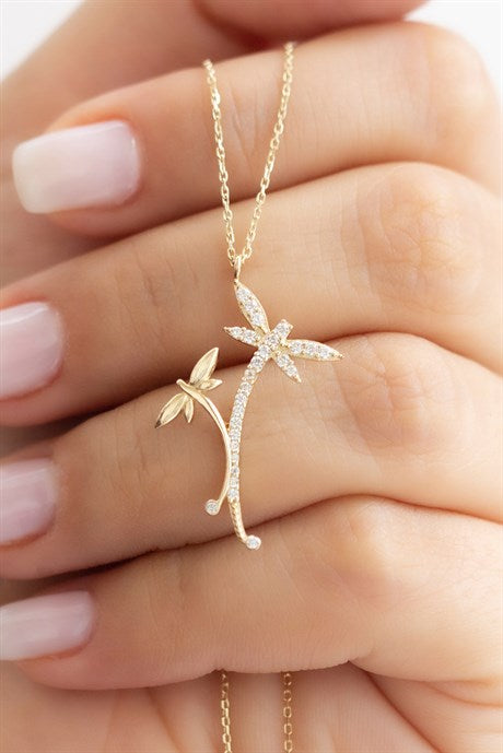 Solid Gold Dragonfly Necklace Minimal