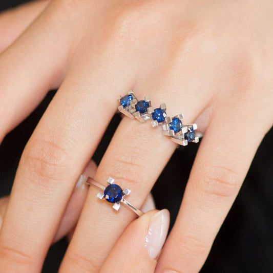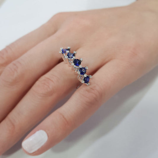 1.50 Carat Diamond Sapphire Five Stones Ring