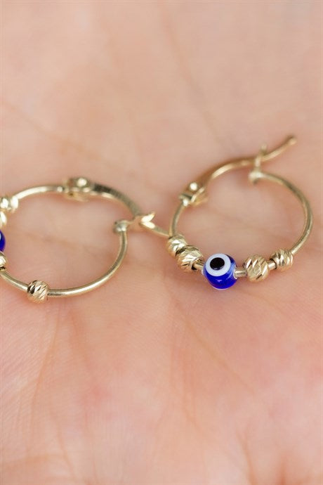 Boucle d'oreille cercle mauvais œil perlé Dorica en or massif | 14K (585) | 1,77 g