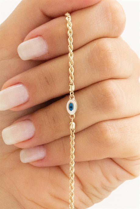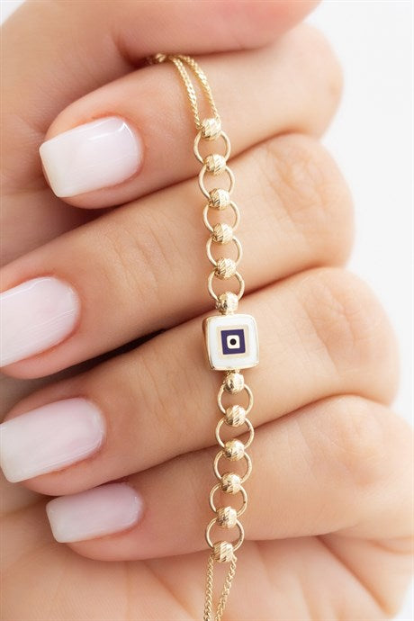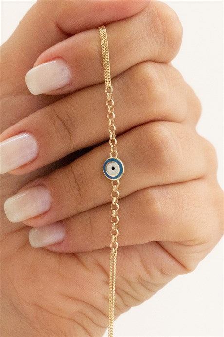 Bracelet Mauvais Œil en Émail Or Massif | 14K (585) | 4.10 gr