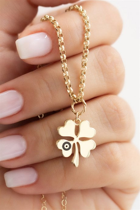 Collier trèfle mauvais œil en or massif | 14K (585) | 4,03 grammes