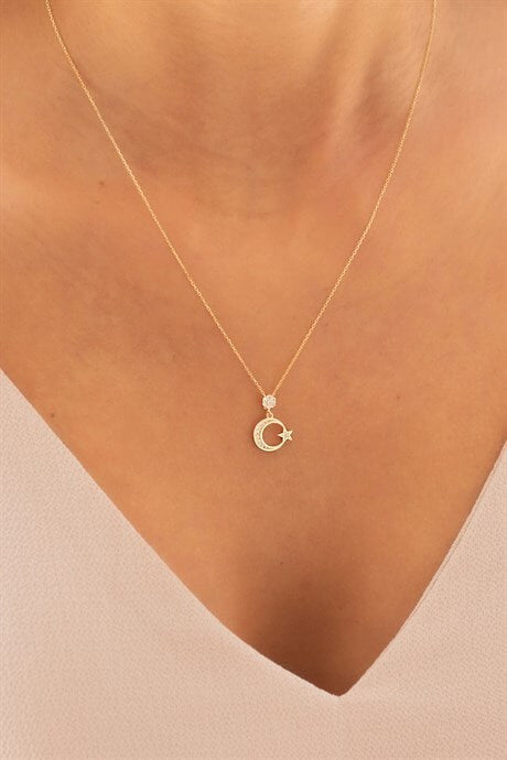 Collier étoile de lune en or massif | 8K (333) | 1,57 g