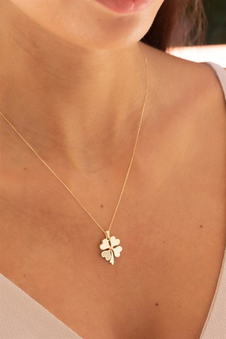 Collier trèfle coeur en or massif | 8K (333) | 2,67 grammes