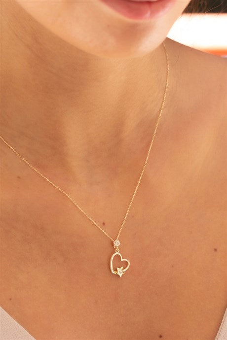 Collier coeur étoile en or massif | 8K (333) | 2,06 grammes