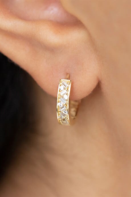 Solid Gold Baguette Gemstone Circle Earring | 14K (585) | 2.85 gr