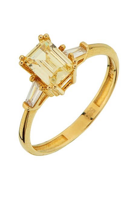 Solid Gold Baguette Gemstone Design Ring | 14K (585) | 2.19 gr