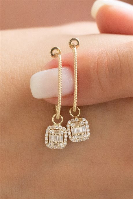 Solid Gold Baguette Gemstone Earring | 14K (585) | 2.39 gr