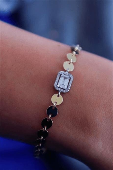 Solid Gold Baguette Gemstone Sequin Bracelet | 14K (585) | 3.34 gr