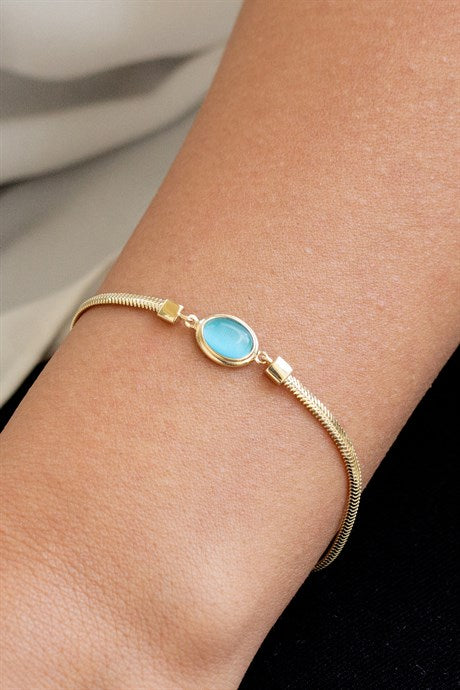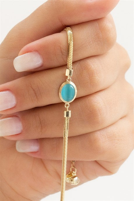 Solid Gold Blue Gemstone Bracelet | 14K (585) | 4.17 gr