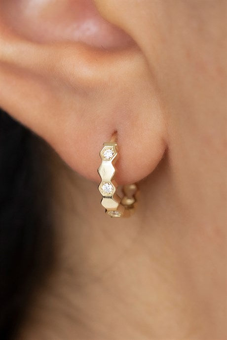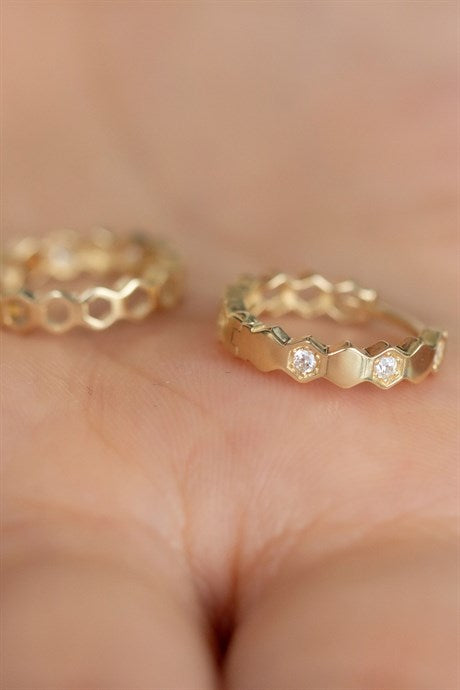 Solid Gold Circle Honeycomb Earring | 14K (585) | 2.04 gr