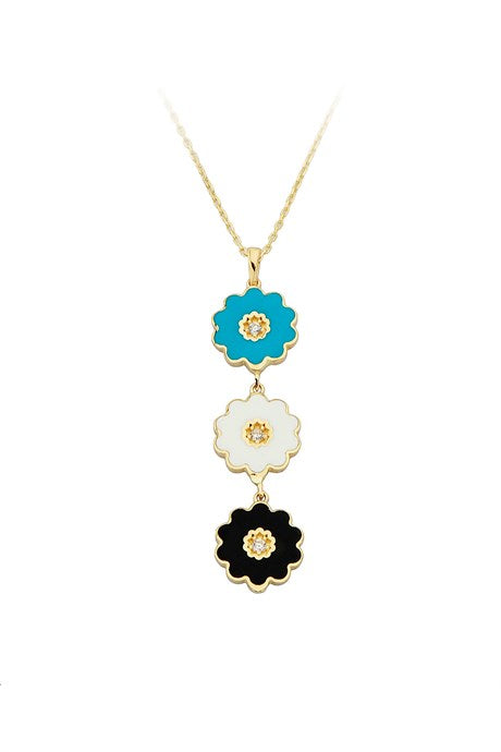 Solid Gold Colorful Flower Necklace | 14K (585) | 3.05 gr