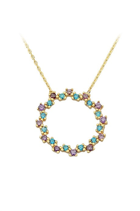 Solid Gold Colorful Gemstone Circle Necklace | 14K (585) | 2.01 gr