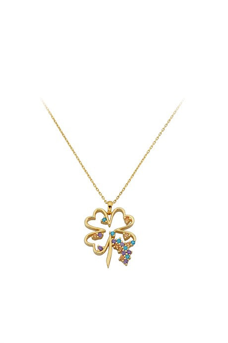 Solid Gold Colorful Gemstone Clover Necklace | 14K (585) | 2.83 gr