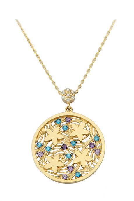 Solid Gold Colorful Gemstone Flower Necklace | 14K (585) | 3.39 gr