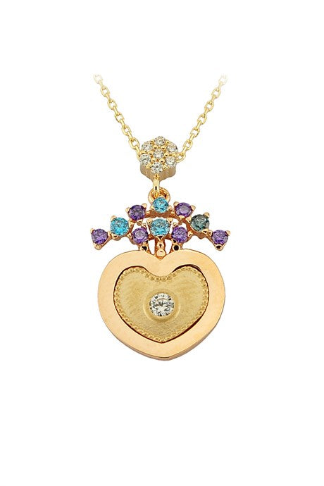 Solid Gold Colorful Gemstone Heart Necklace | 14K (585) | 2.92 gr
