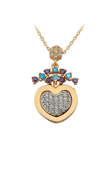 Solid Gold Colorful Gemstone Heart Necklace | 14K (585) | 2.95 gr