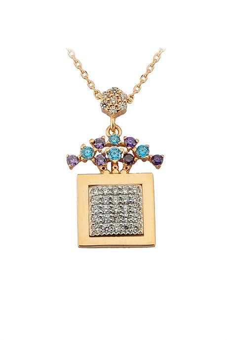 Solid Gold Colorful Gemstone Square Necklace | 14K (585) | 3.18 gr