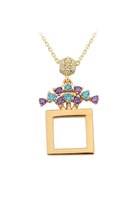 Solid Gold Colorful Gemstone Square Necklace | 14K (585) | 2.24 gr