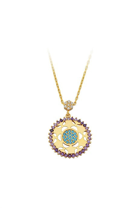 Solid Gold Colorful Gemstone Star Motif Necklace | 14K (585) | 2.89 gr