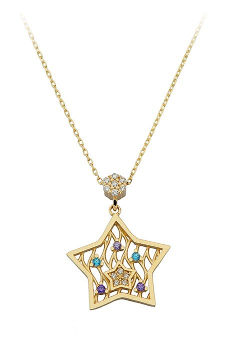 Solid Gold Colorful Gemstone Star Necklace | 14K (585) | 2.12 gr