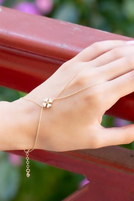 Solid Gold Double-Sided Heart Clover Bracelet Bashmer | 14K (585) | 2.47 gr