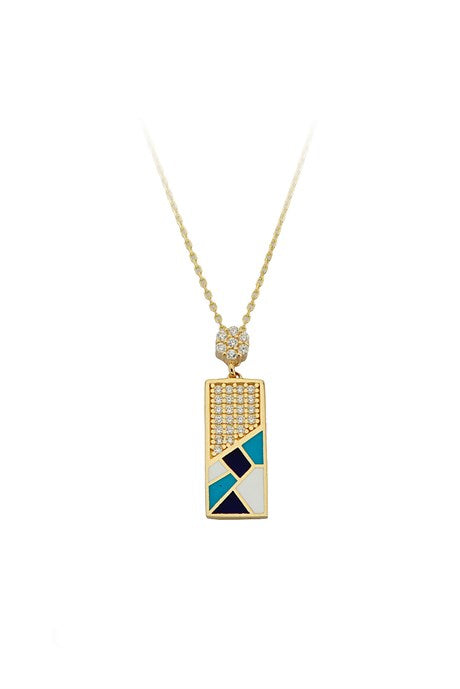Solid Gold Enamel Gemstone Stick Necklace | 14K (585) | 2.73 gr