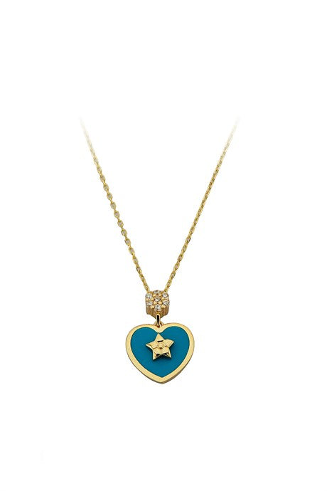 Solid Gold Enamel Star Heart Necklace | 14K (585) | 2.45 gr