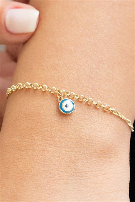 Solid Gold Evil Eye Bracelet | 14K (585) | 2.63 gr