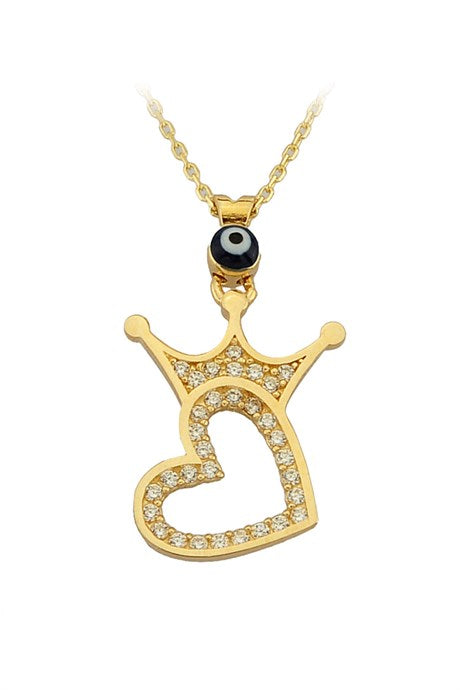 Solid Gold Evil Eye Crown Heart Necklace | 14K (585) | 2.27 gr