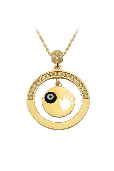 Solid Gold Evil Eye Handprint Necklace | 14K (585) | 2.78 gr
