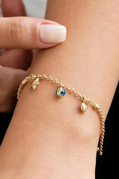 Solid Gold Evil Eye Lucky Bracelet | 14K (585) | 3.32 gr