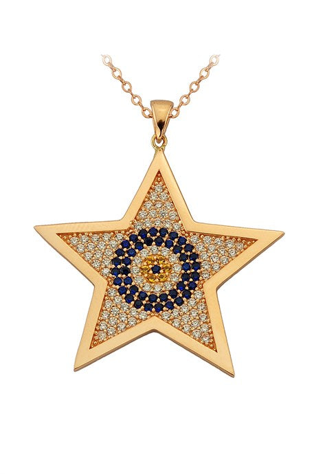 Solid Gold Evil Eye Star Necklace | 14K (585) | 4.93 gr