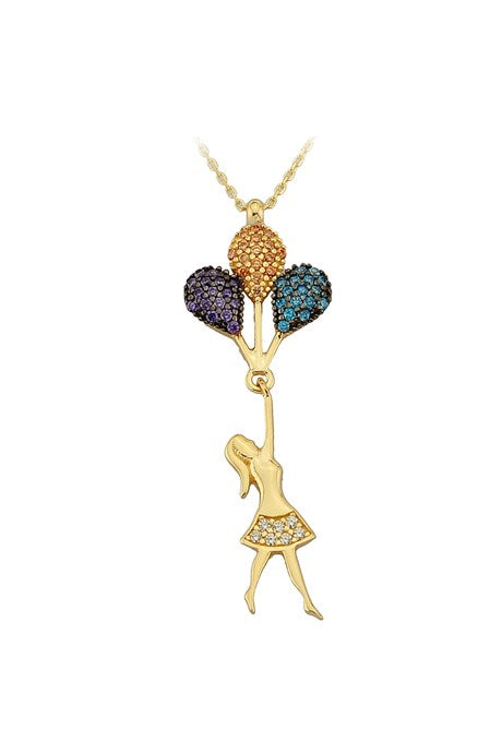 Solid Gold Flying Balloon Girl Necklace | 14K (585) | 2.80 gr