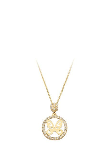 Solid Gold Gemstone Circle Butterfly Necklace | 14K (585) | 2.02 gr